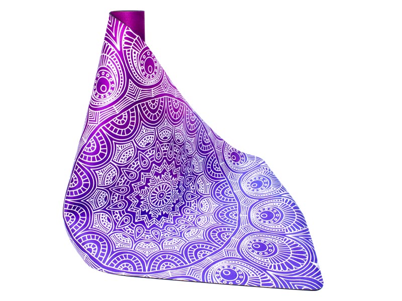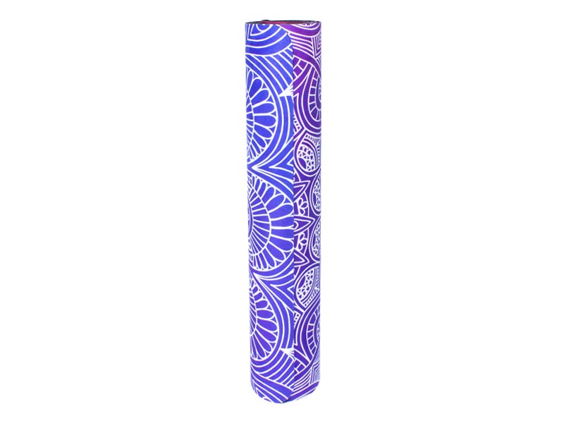 Si quieres practicar Yoga o Pilates sobre el mejor y más bello mat del mercado, tienes que elegir la alfombrilla «Mandala»!!, con un hermoso diseño sobre una suave superficie aterciopelada de tonos magenta a lila, y un reverso sólido, resistente y súper-adherente engomado negro. Grosor de 5mm y más ancho que el común (68cm). Peso 3kg. Presentación enrollado.