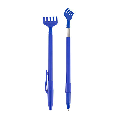 Original y divertido lápiz plástico de variados colores, con tapa, extensible con rascador, pasta azúl.
