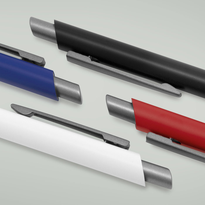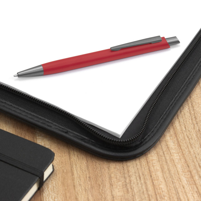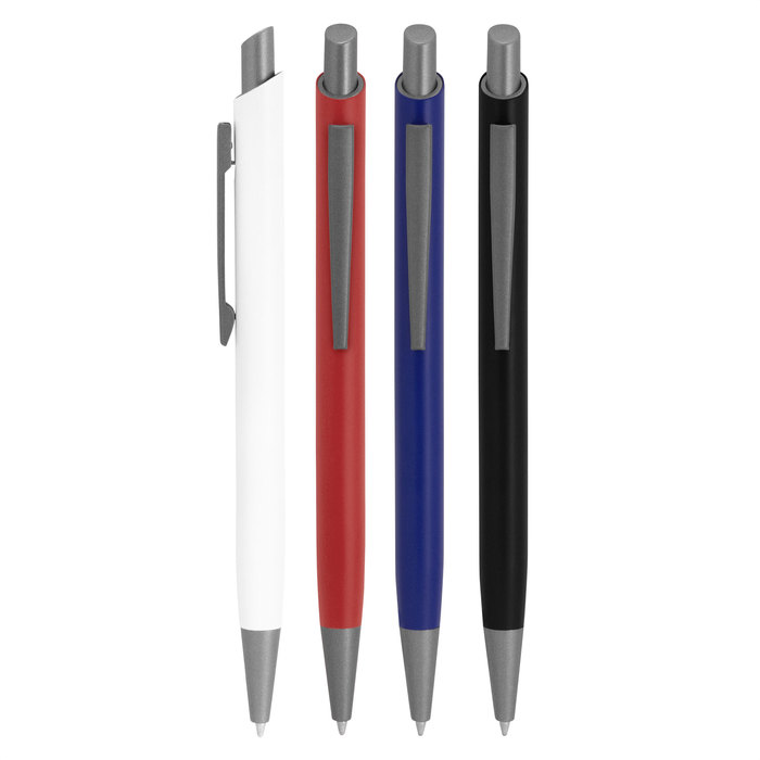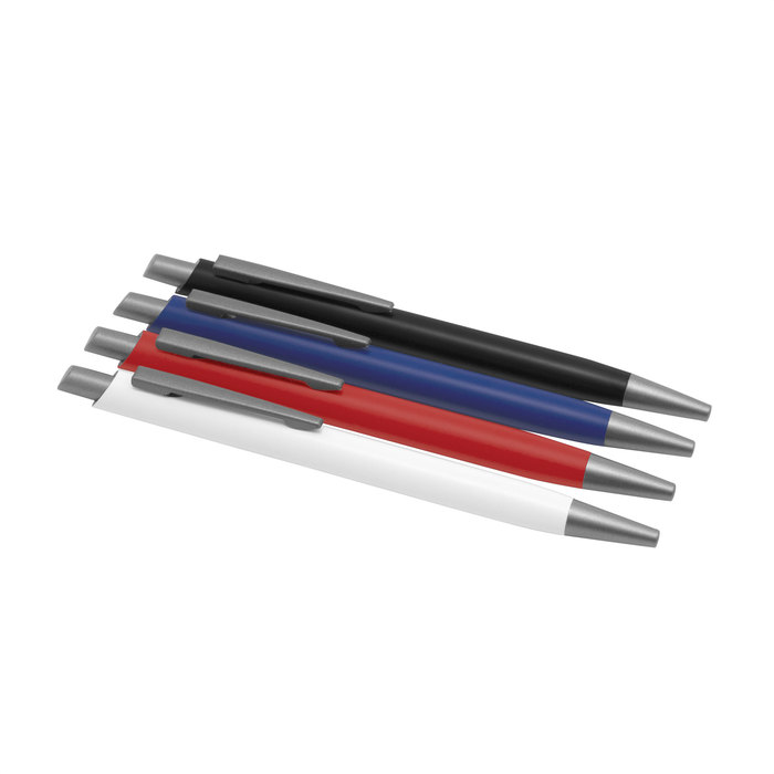 Boligrafo promocional retráctil de Aluminio, ABS, Acero. Cuerpo revestido en laca de diferentes colores, acabado mate. Pulsador, clip y puntera de color gris gun metal. Tinta azul. Amplia área de impresión. Destaque su logo corporativo en este producto de uso diario de excelente calidad.