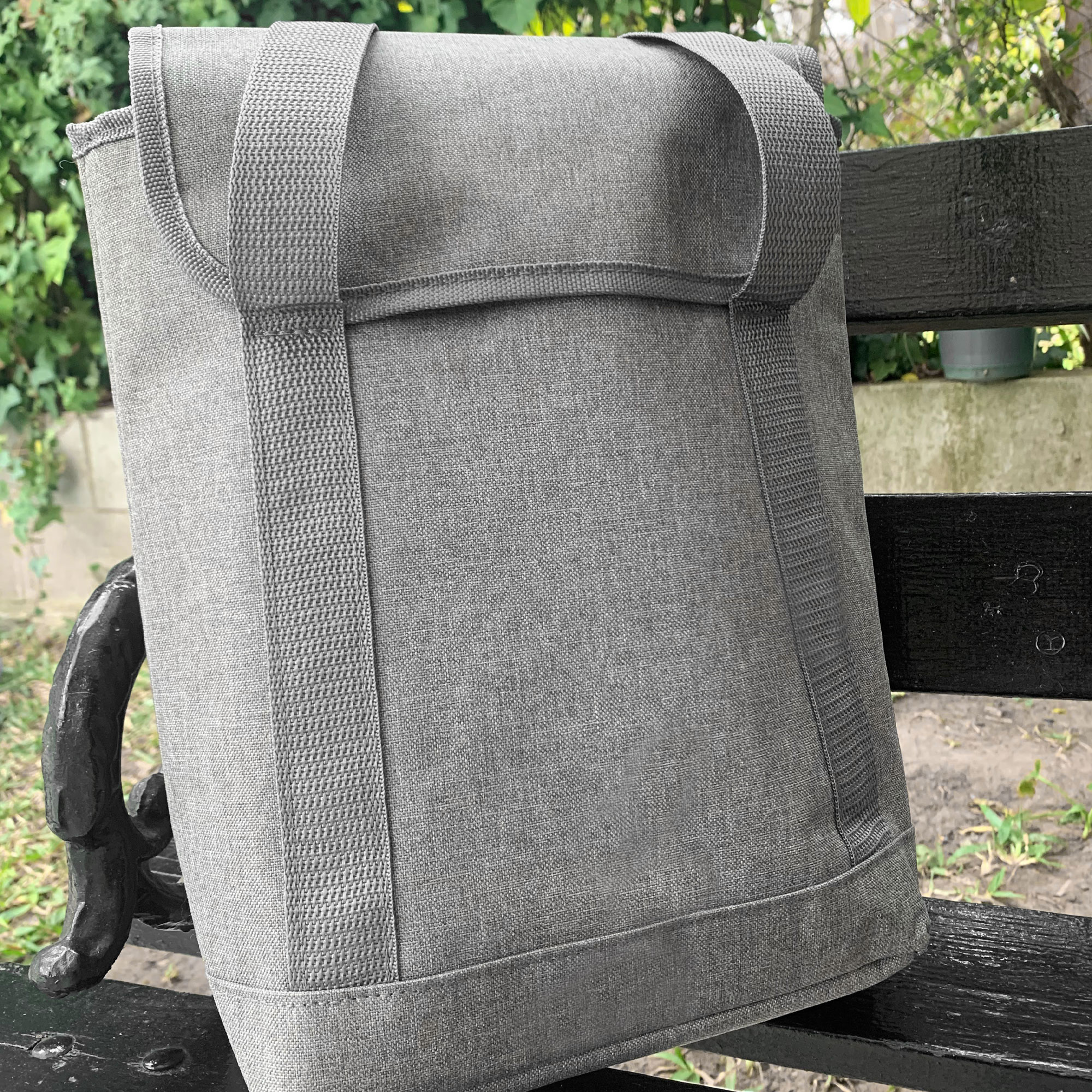 Bolso mochila tamaño 36 x 25 x 14 cm. Poliéster. Capacidad 12 litros. Mochila con manijas y correas ajustables para llevar en la espalda. Tapa con velcro. Interior acolchado con división movible que se fija con velcro. Espacio para poner botella térmica y los accesorios que desees para un día ideal.