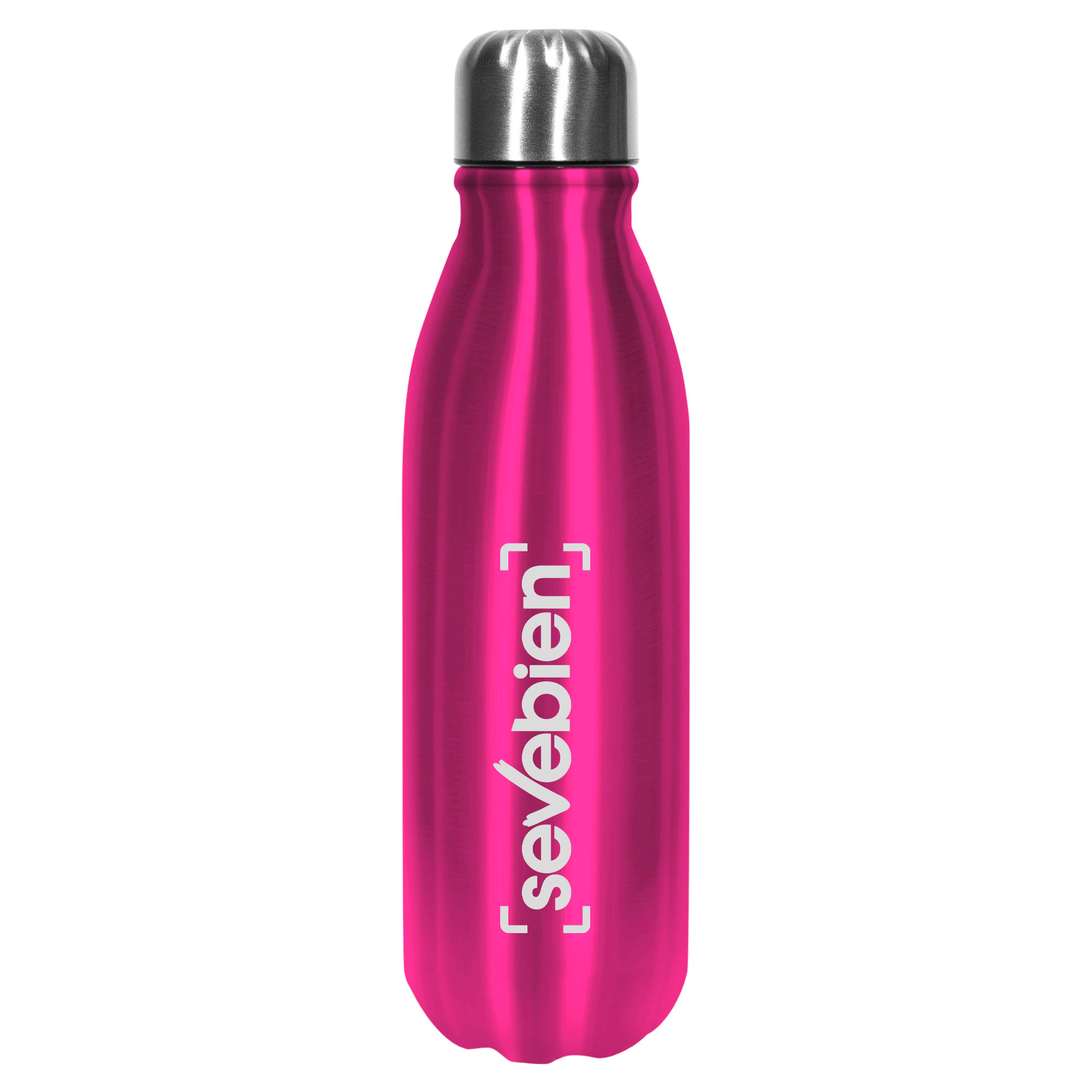 Atractiva botella de alumino, tamaño Ø 6 x 22,5 cm. Capacidad 550 ml. cuerpo en llamativos colores .Tapa de acero a rosca. Para logo grabado laser ideal regalo para eventos especiales.