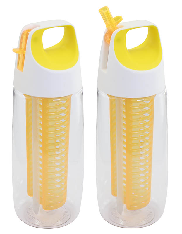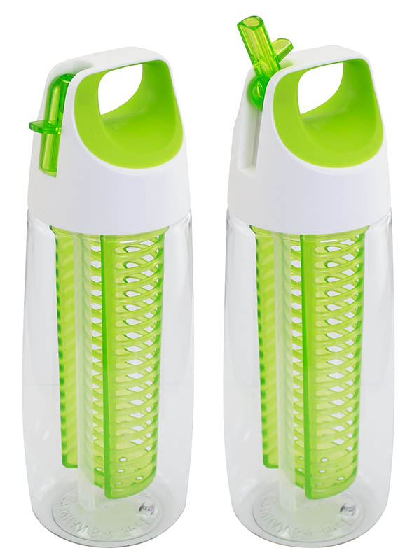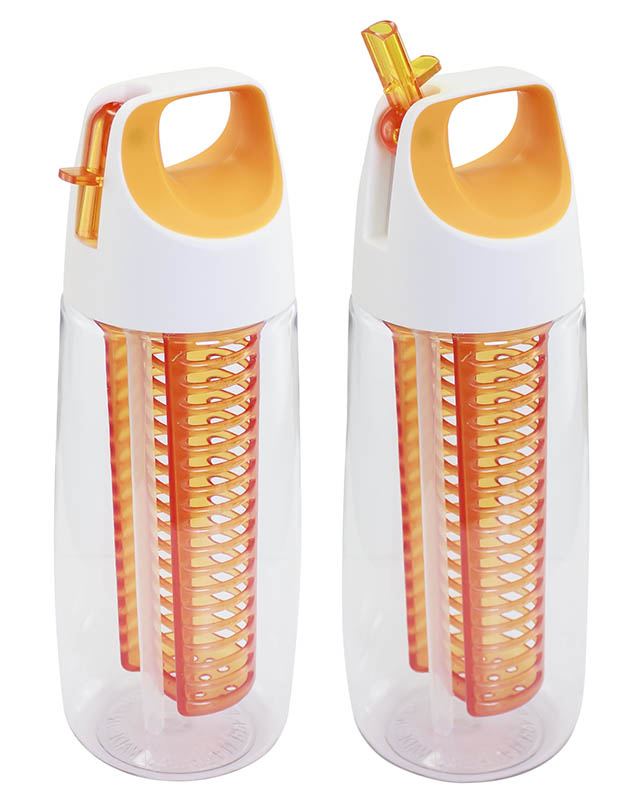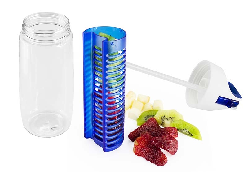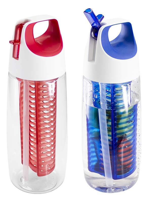 Botella de 700cc, con tapa deportiva twist-off de PP con asa y boquilla plegable. Sólo para líquidos fríos o tibios. Contiene filtro interior, ideal para rellenar con frutas, hojas, semillas, yerba mate o té, para disfrutar de un exquisita agua saborizada. Material plástico Tritán translúcido de alto brillo, libre de BPA. Presentación en caja de regalo de cartulina blanca.
