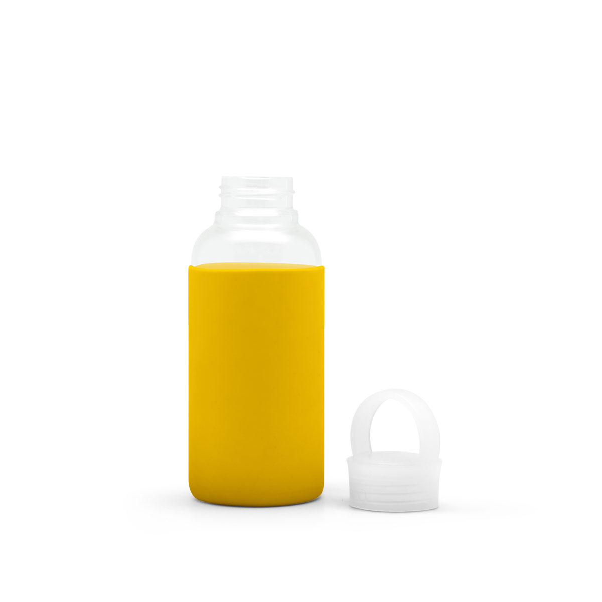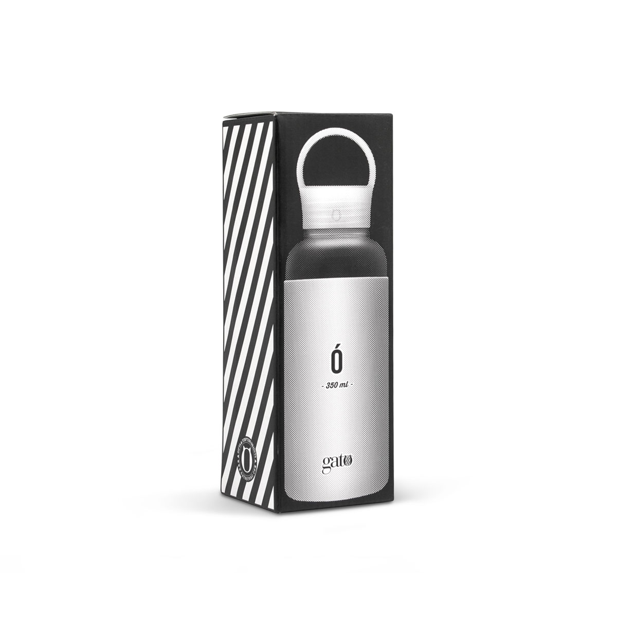 Botella de 350ml práctica y reutilizable ya que es de vidrio de borosilicato. Posee manga de silicona antideslizante en varios colores y boca ancha. Su tapa es a rosca, antiderrame y con manija de agarre. Vidrio de borosilicato. Ø 6,5 x 20 cm. Es un producto BPA free y apto lavavajillas. marca GATO