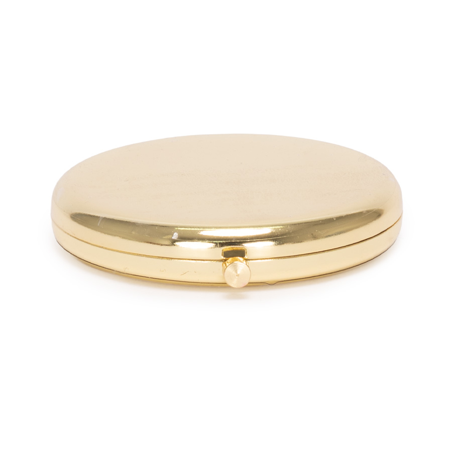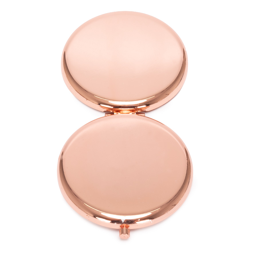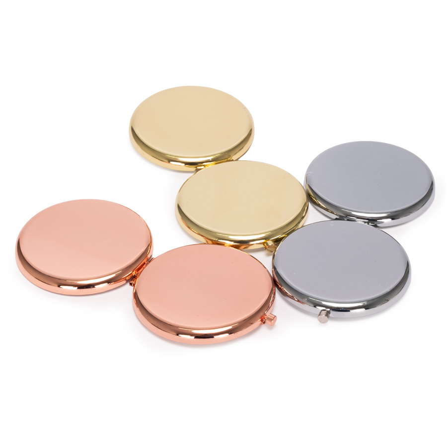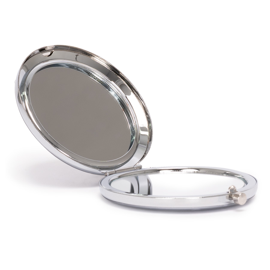 El mejor aliado para la cartera o cosmetiquero. Espejo metálico de Acero inoxidable redondo doble faz. Interior con 2 espejos: uno normal, el otro con aumento. Presentación en bolsa espuma frozen + caja de cartón laminado negro. Sugerencia de logo grabado laser garantiza elegancia y durabilidad.