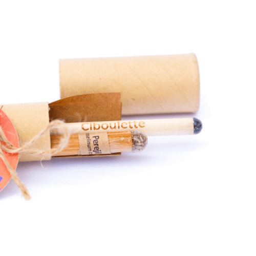 - Presentación de línea : Estuche tipo tubo de cartulina Kraft (2,5 x 19 cm) + Etiqueta