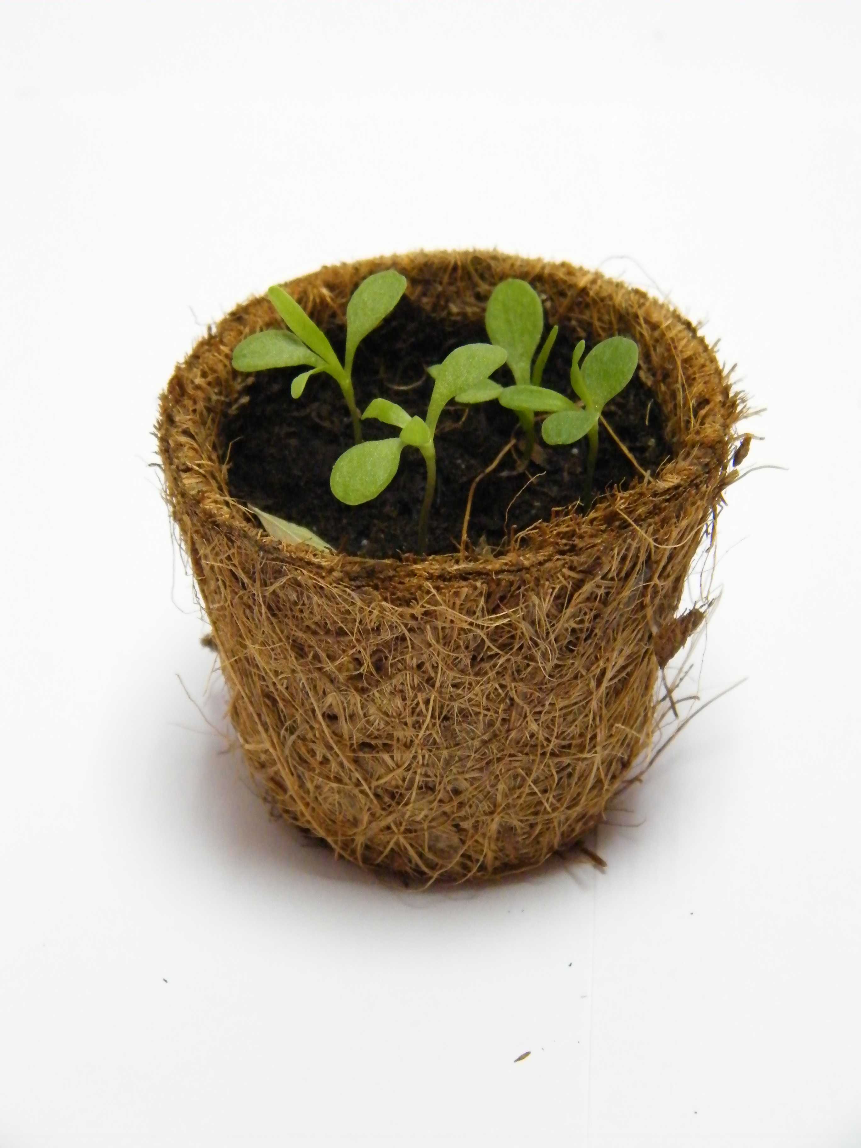 1 macetero fibra vegetal 8×8 cms., 3 comprimidos de » tierra mágica» en base a turba que al contacto con el agua se expanden y forman el volumen de tierra necesario para el macetero, 1 sobre con semillas a elección : tomate cherry, espinaca, lechuga, dedal de oro o caléndulas. Instrucciones de siembra impresas en la caja.