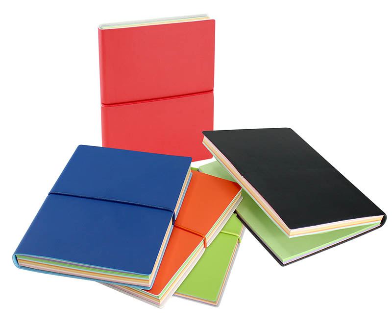 Libreta «High Class» interior 144 hojas lisas 80 grs con 9 colores diferentes, ideal para separar temas o ideas, cubierta de PU atractivos colores. Tamaño 13.4 x 18 x 1.8 cm (cerrado). Cierre con elástico sujeción. Regalo original y útil ideal para clientes y/o colaboradores.
