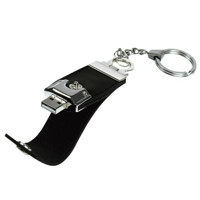 Llavero metálico con USB Pendrive ejecutivo de cuero negro de 4 GB de capacidad. Presentación en caja metálica con ventana. Tamaño: 3.2 x 8.5 x 1.6 cm. Capacidad: 4 GB. Colores: Negro.