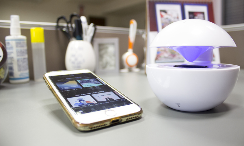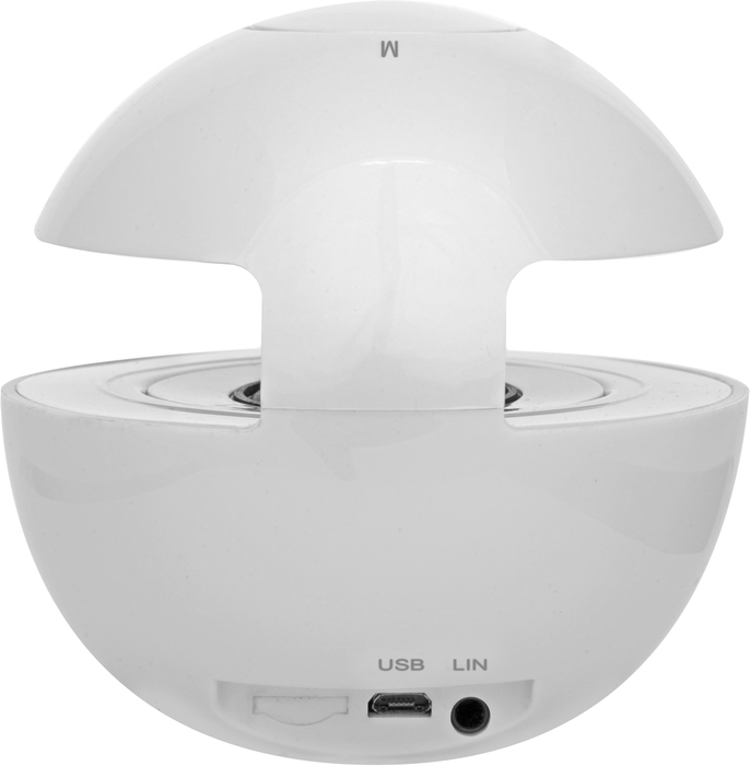 Sus medidas son 11,5 x 13 cm. Parlante bluetooth. Botón de encendido y apagado. Cuenta con una luz en el centro del parlante que va cambiando de color. Botón de volumen, play, pausa y modo. Alcance 10 metros aproximadamente. Material plástico.