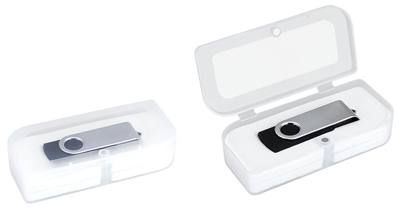 Pendrive 32 Gb de memoria, carcaza metálica de giro, estuche PVC translúcido