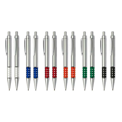 Elegante y llamativo lápiz publicitario Metalizado modelo Sena, con anillo metálico varios colores ,con orificios. Impresión en serigrafía.