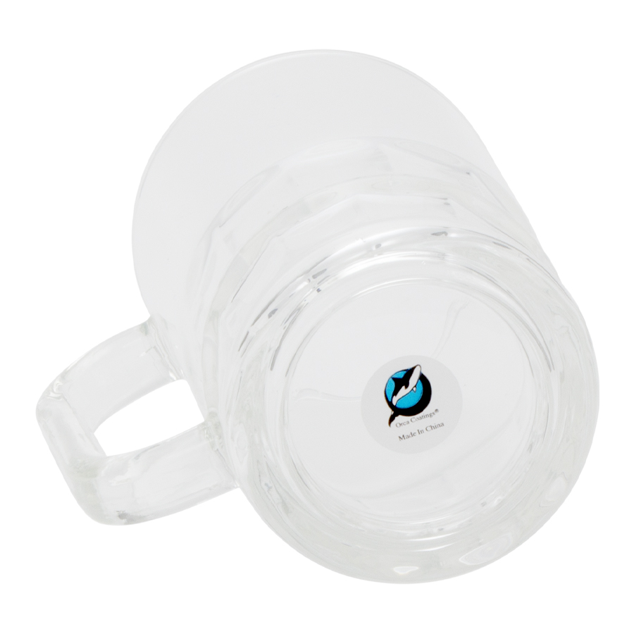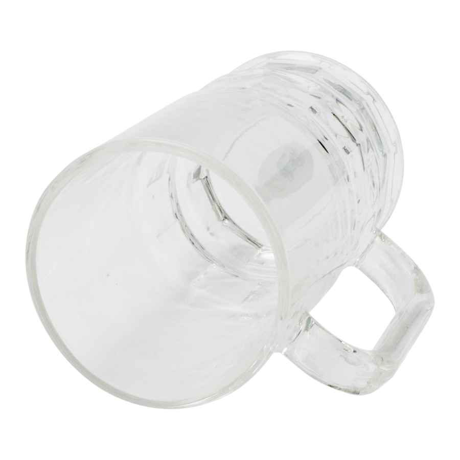 Tazón Cervecero de Vidrio, para Sublimación, para líquidos fríos, con asa. Capacidad 400 ml. Presentación bolsa plástica empavonada + caja de cartón blanco.
