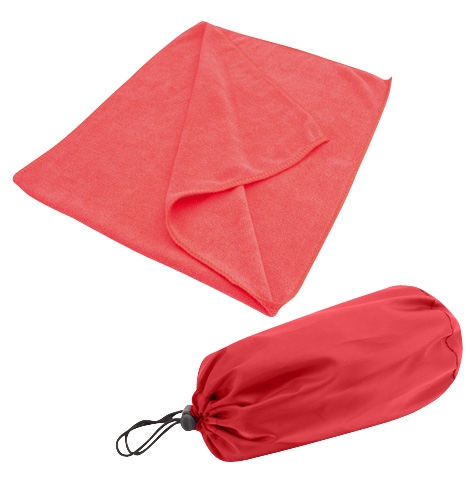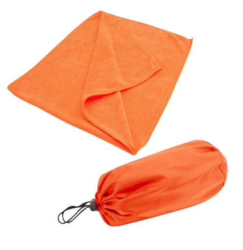 Toalla de Microfibra dentro de Bolso de polyester 210T. Tamaño: Toalla 33 x 73 cm. Colores: Rojo, Blanco , Azul, Naranja.