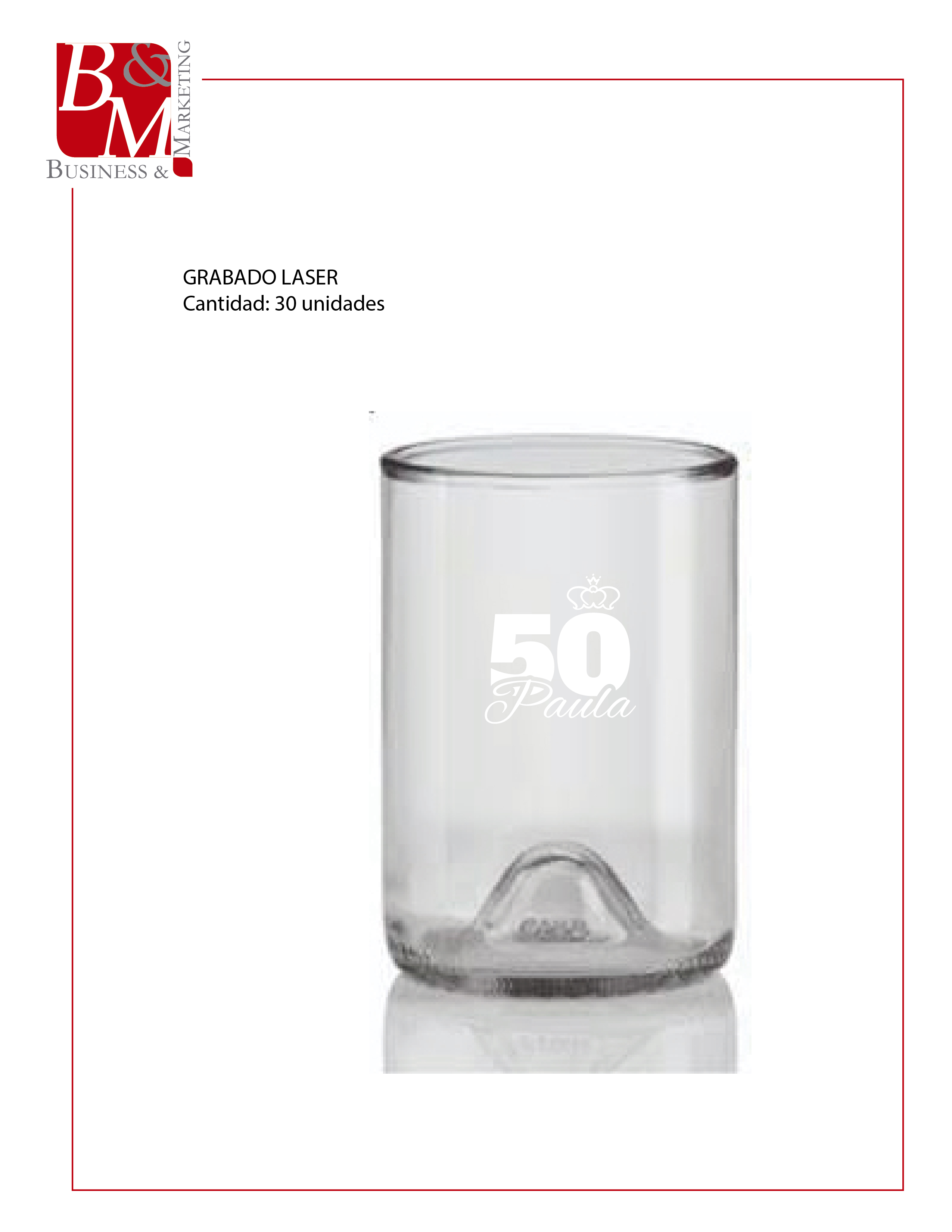Técnica ideal para personalizar cantidades pequeñas, grabado laser en vidrio.