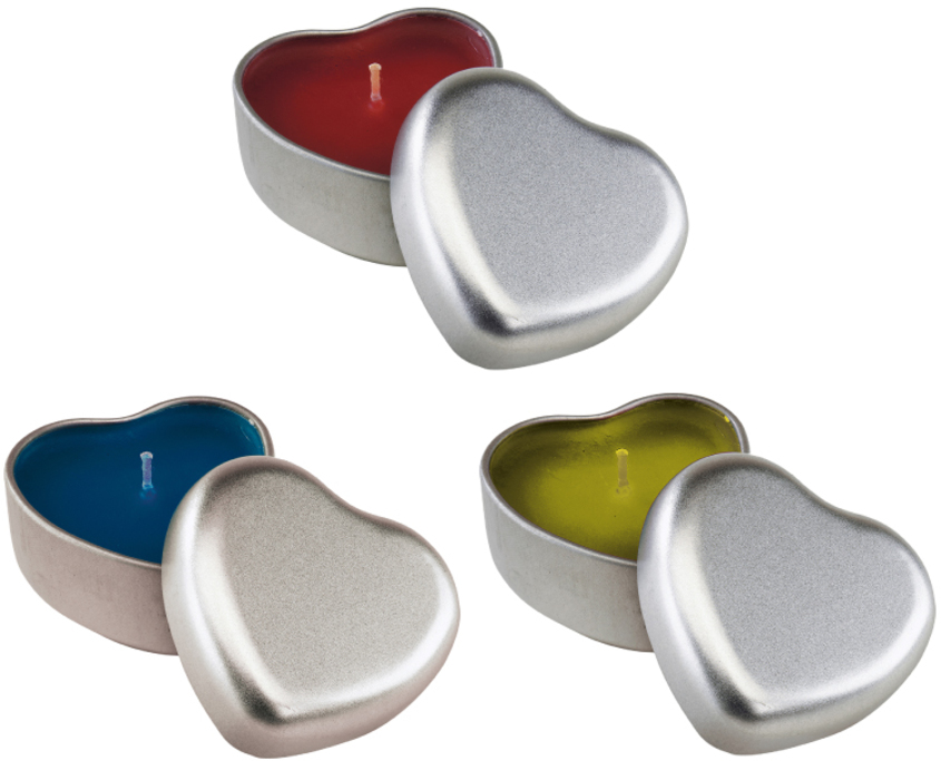 Regalo promocional pequeño de alto impacto. Velita con envase metálico 4,5 x 2,9 x 4,6 cms., colores rojo, azúl y amarillo, Oferta limitada grabado laser sin cargo.